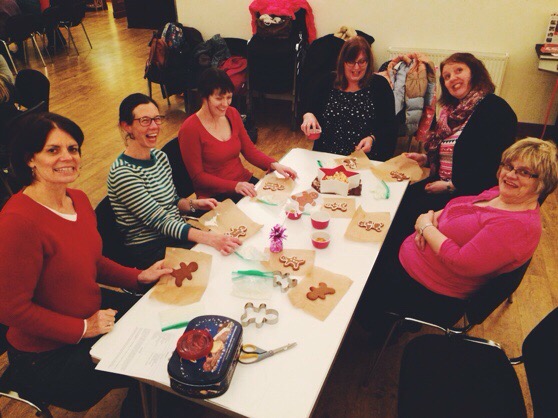 Running a gingerbread man table at a ladies’ craft night.