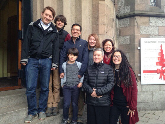 Christmas Morning at church with Harriet and Koko (Taido’s mom and sis).